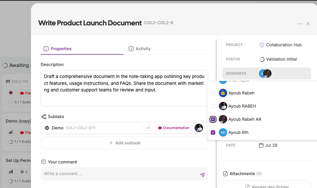 Multiple task assignees → assign more than one person to the same task.