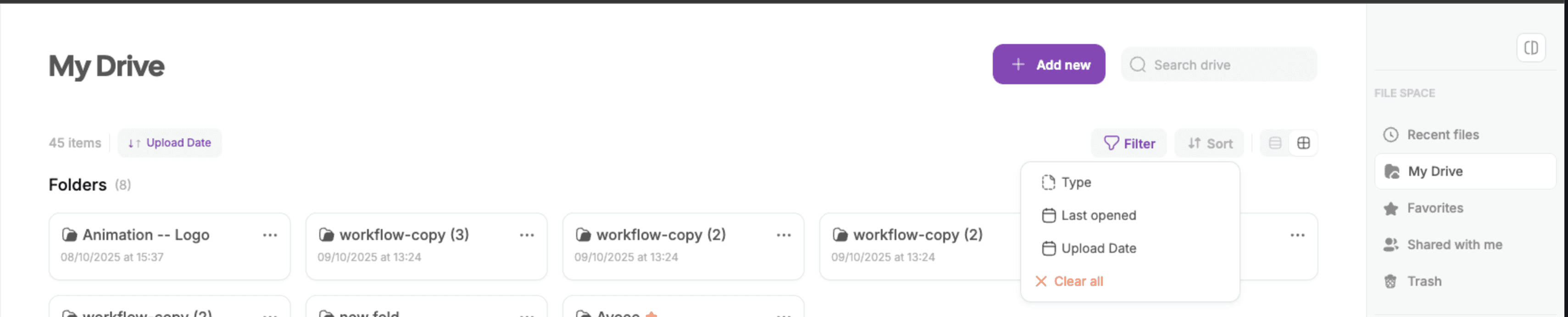 Focuses on performance and file management, adding folder uploads, file search in Drive, and bulk trash management, alongside several UI refinements.