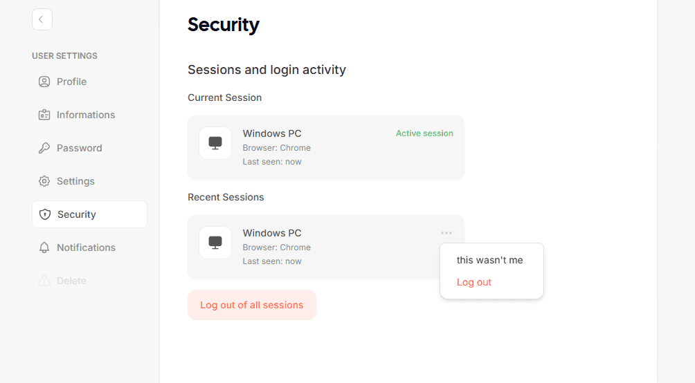 Security Tab: A new Security tab in user profiles allows you to see connected sessions and revoke access as needed.