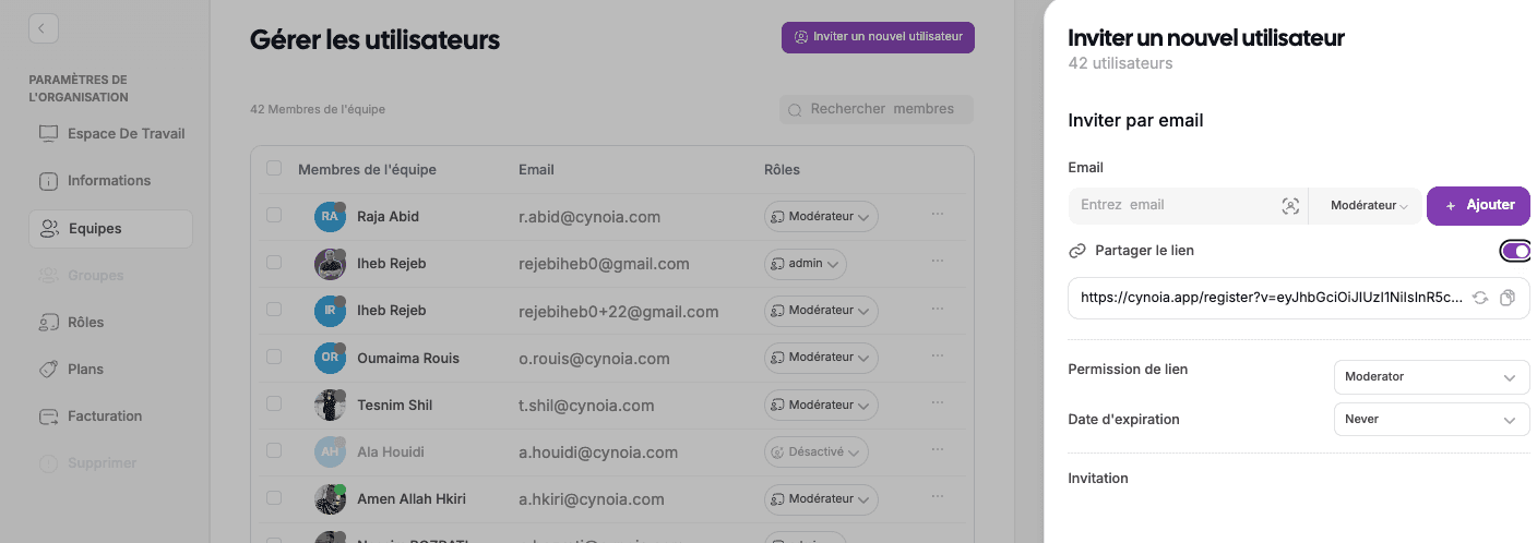 Invite Members via Link: Invite users to your organization with a simple, shareable link.
