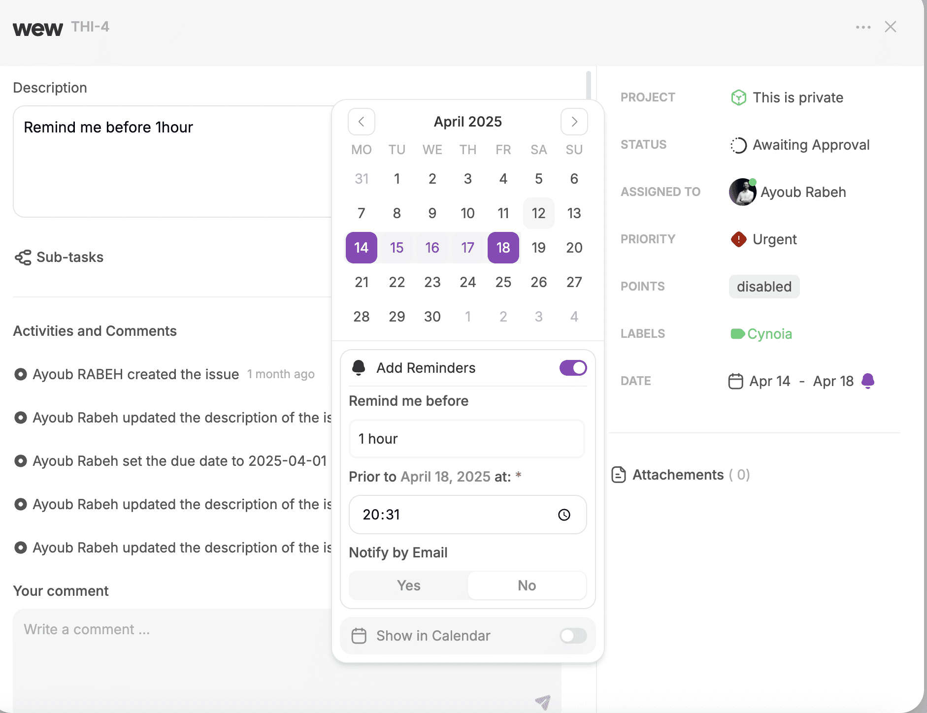 View Tasks on Calendar: Tasks with due dates now appear on your Cynoia Calendar for better planning and visibility.