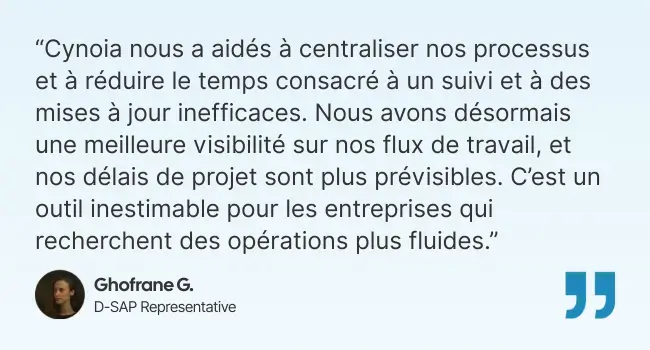D-SAP highlights Cynoia's ability to eliminate inefficiencies and reduce project delays as the main reason for its recommendation. With tools designed for African businesses, Cynoia stands out as a cost-effective and scalable solution to enhance project management and collaboration.