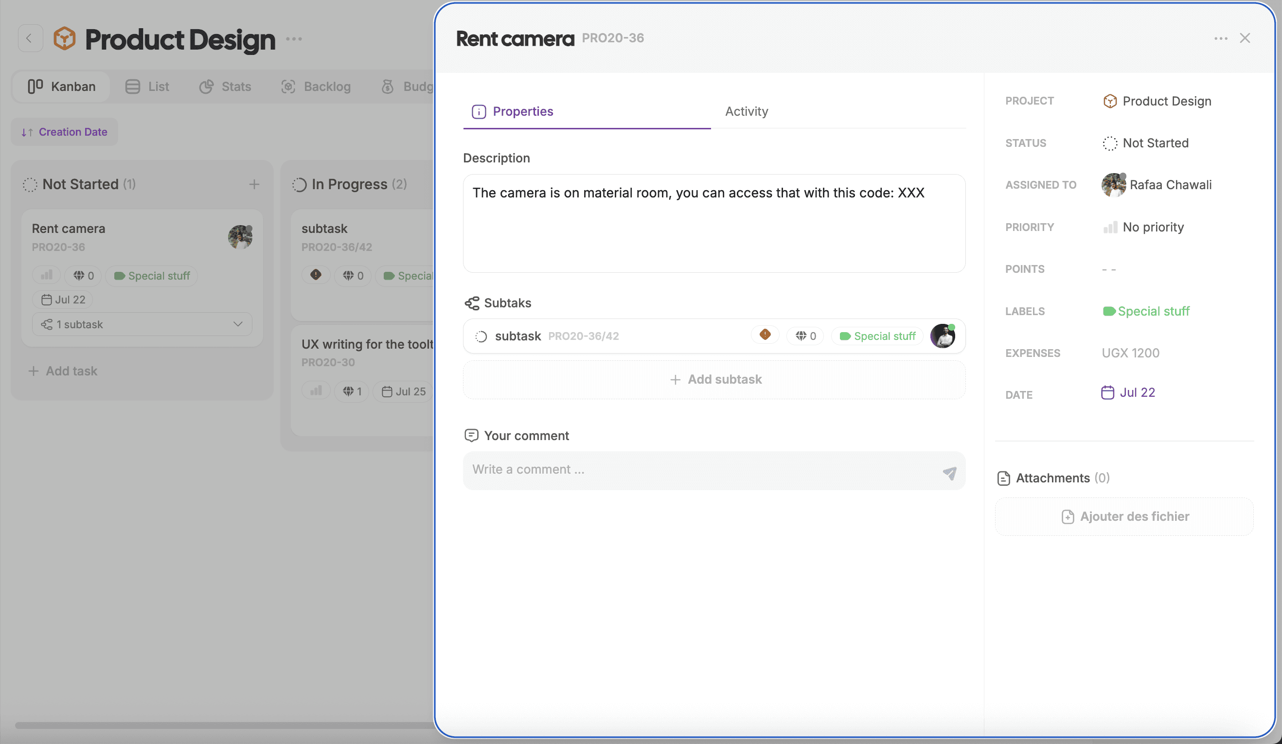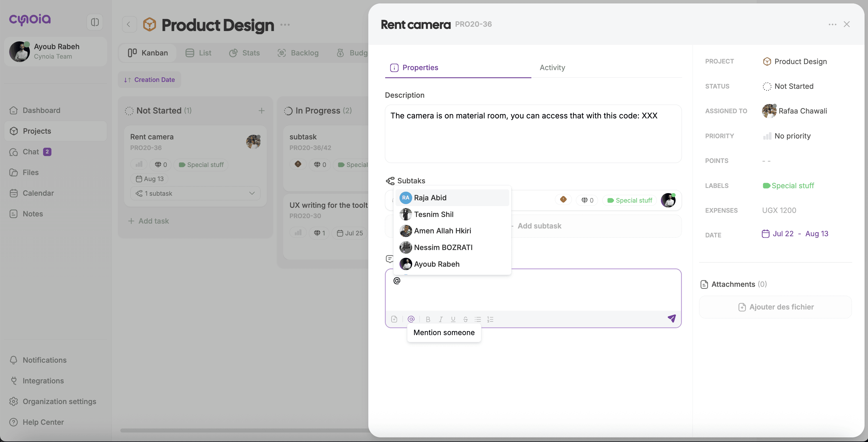 @Mentions in Tasks: Mention team members in both task descriptions and comments.