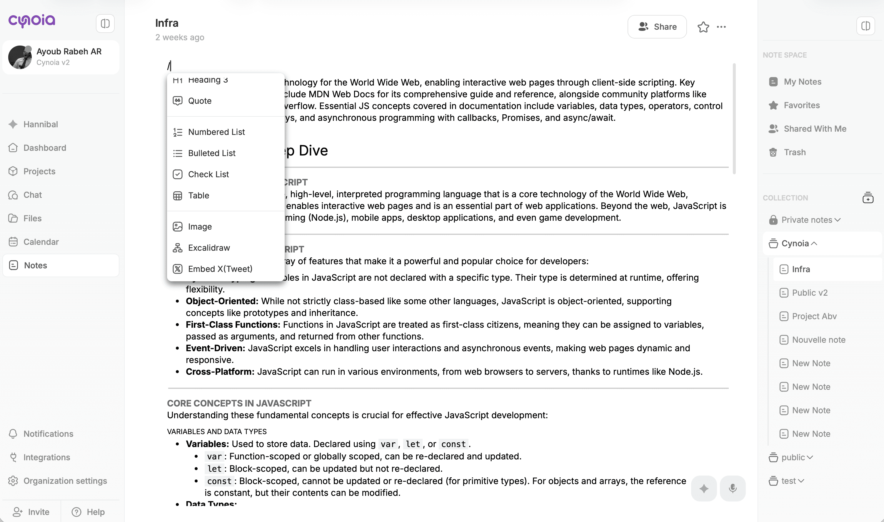 Creating and editing notes in Cynoia is designed to feel fast, flexible, and distraction-free whether you’re jotting down quick ideas or building full documentation.
