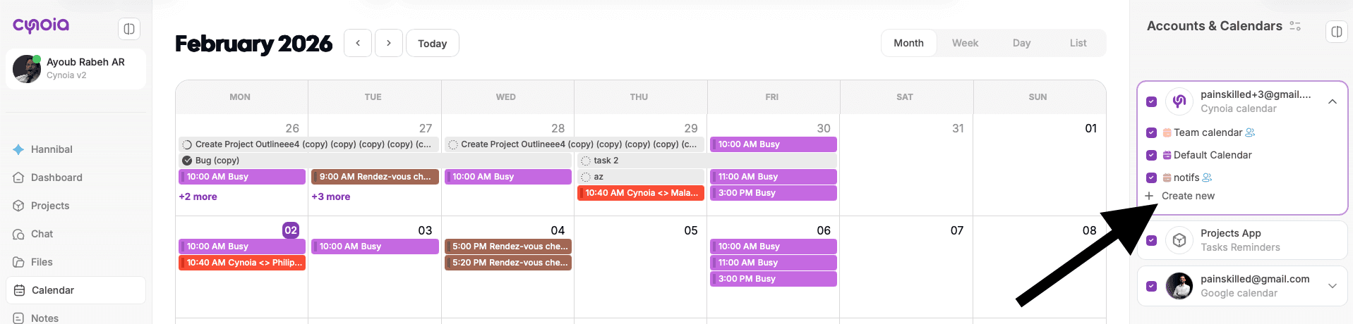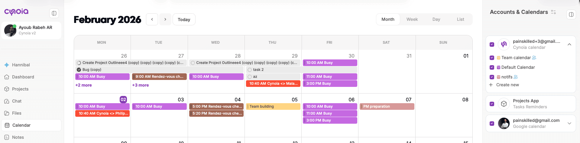 Calendars in Cynoia help you organize events, meetings, and reminders across your workspace.