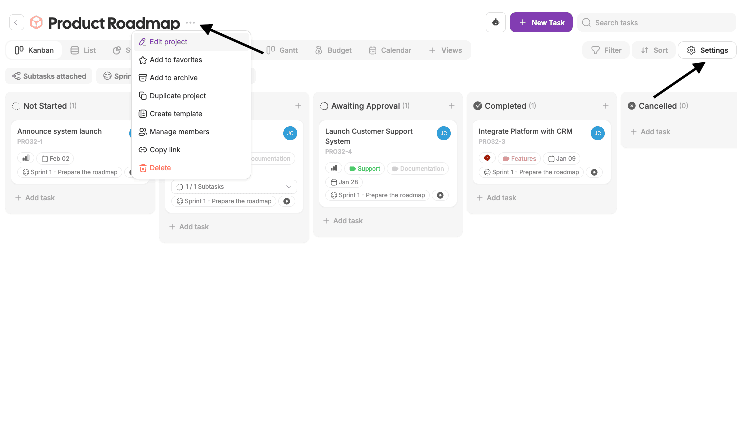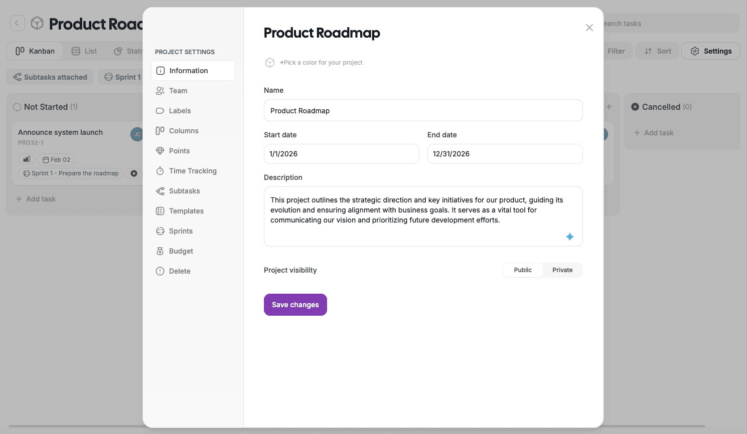 Each project has its own settings, giving teams flexibility to adapt projects to different workflows and needs.