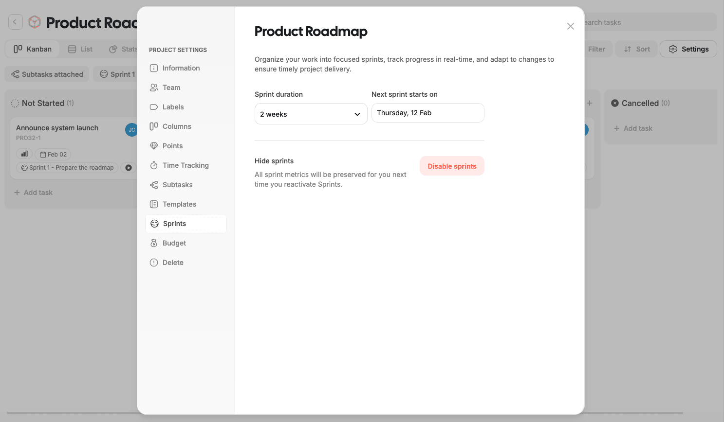Enable or disable sprints