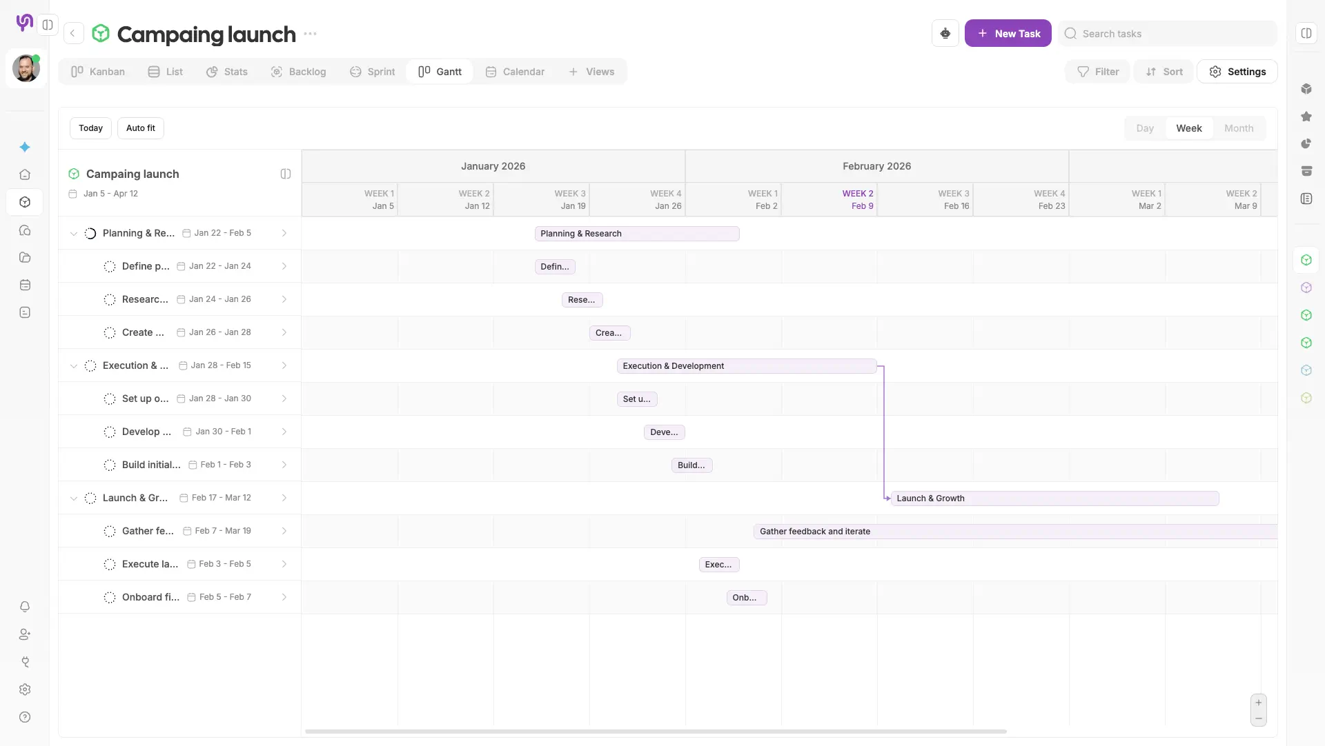 View the progress of each task directly on the timeline.