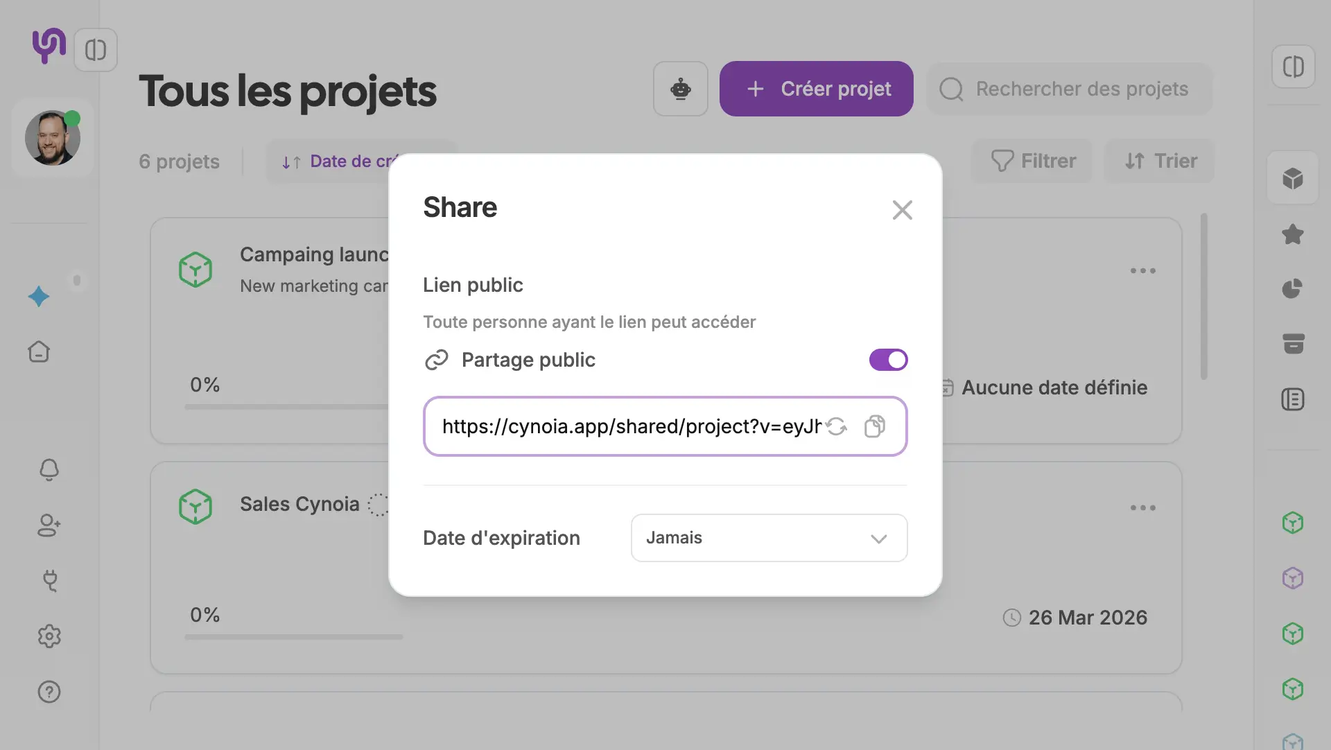 Generate a unique URL to give access to a specific view (Project, Note, File).